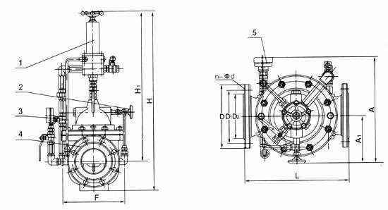 1、导阀2、针阀3、球阀4、主阀5、压力表
